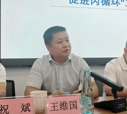 轮值会长、党支部书记王维国在会上阐述了“促进内循环 ”工作思路,强调要通过增强商会自身造血功能、精准服务会员企业需求、探索可持续的“ 以商养会 ”模式,推动商会实现高质量发展。他号召全体成员群策群力,共同构建长效机制,促进商会可持续、高质量发展,为会员企业创造更大价值。