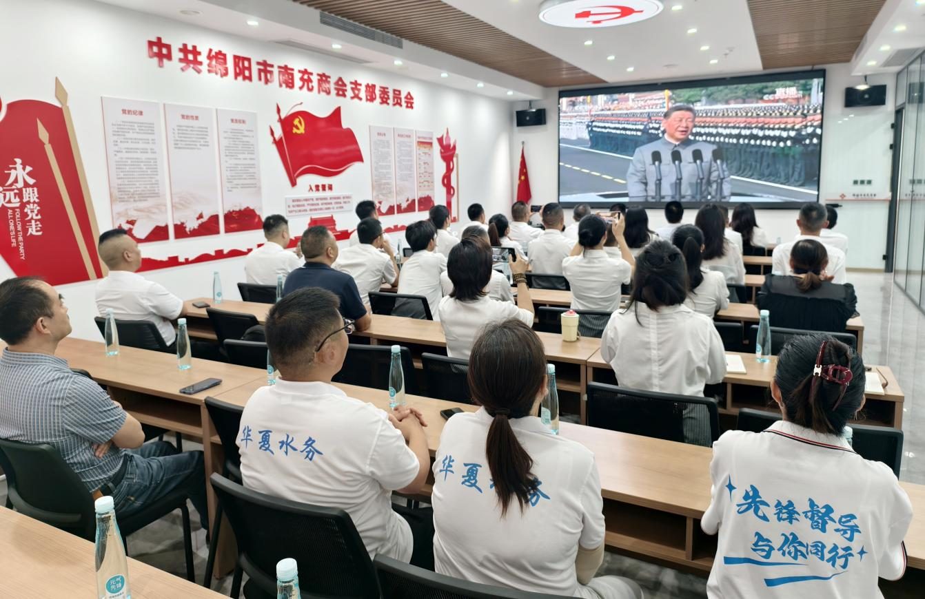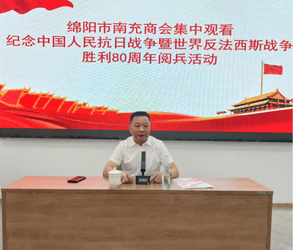 2025 年9月3日上午,纪念中国人民抗日战争暨世界反法西斯战争胜利80周年阅兵式在北京天安门广场隆重举行。绵阳市南充商会组织会员及企业员工在商会新办公室集中观看阅兵仪式实况直播,共同感受这一庄严而激动人心的时刻。