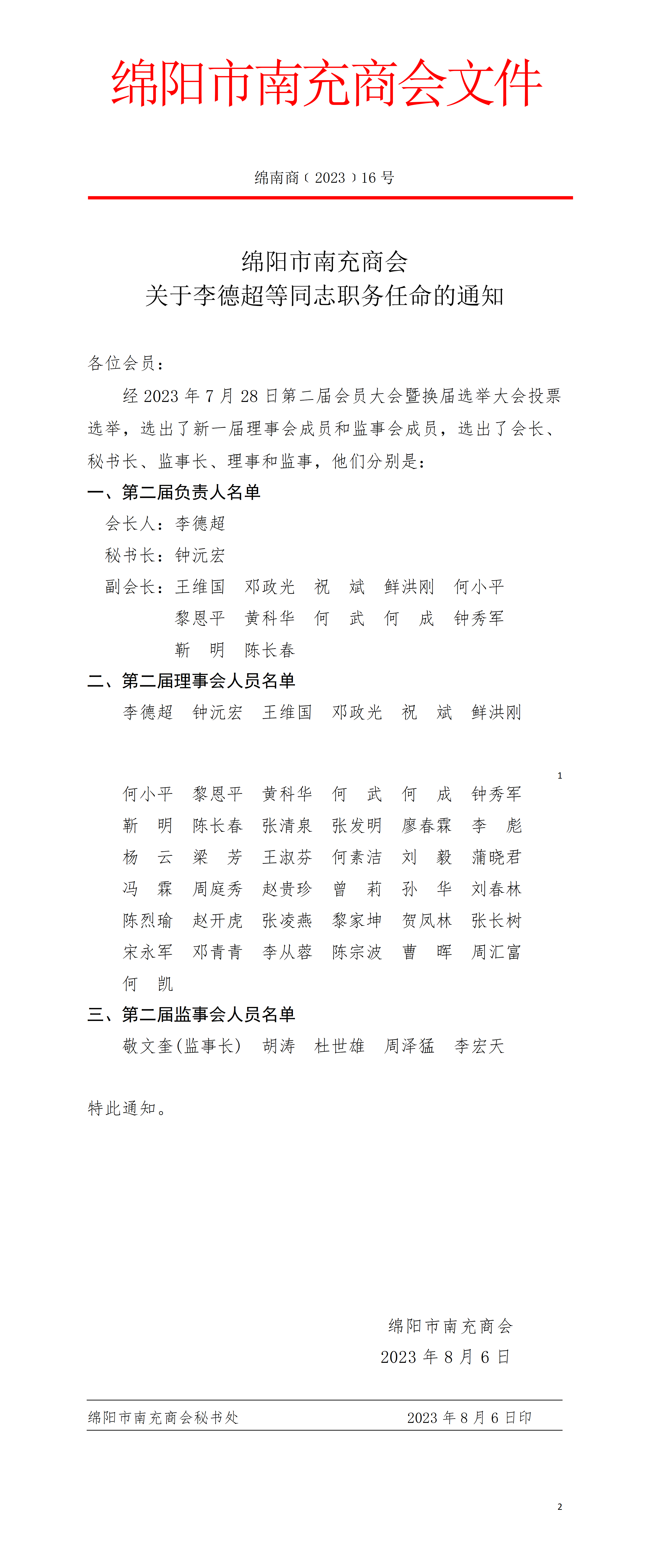 关于李德超等同志职务任命的通知