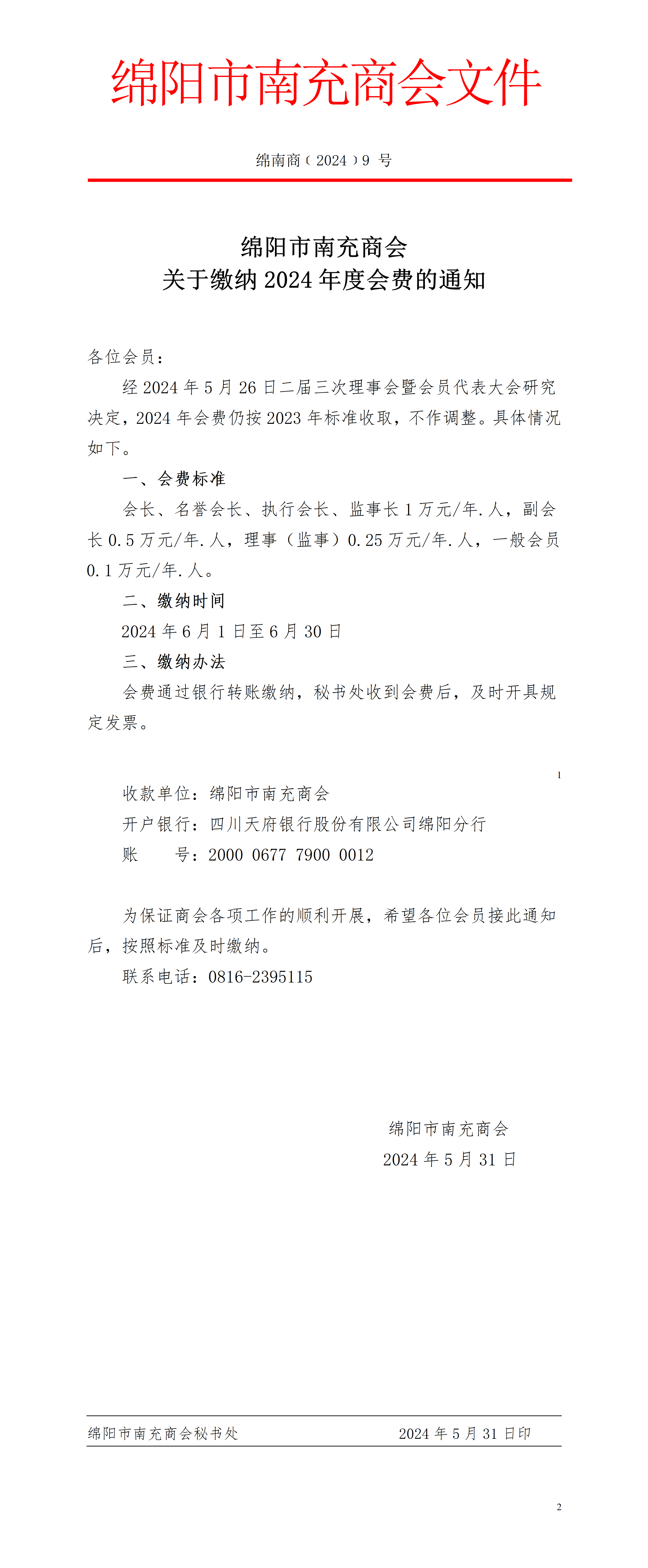 关于缴纳2024年会费的通知