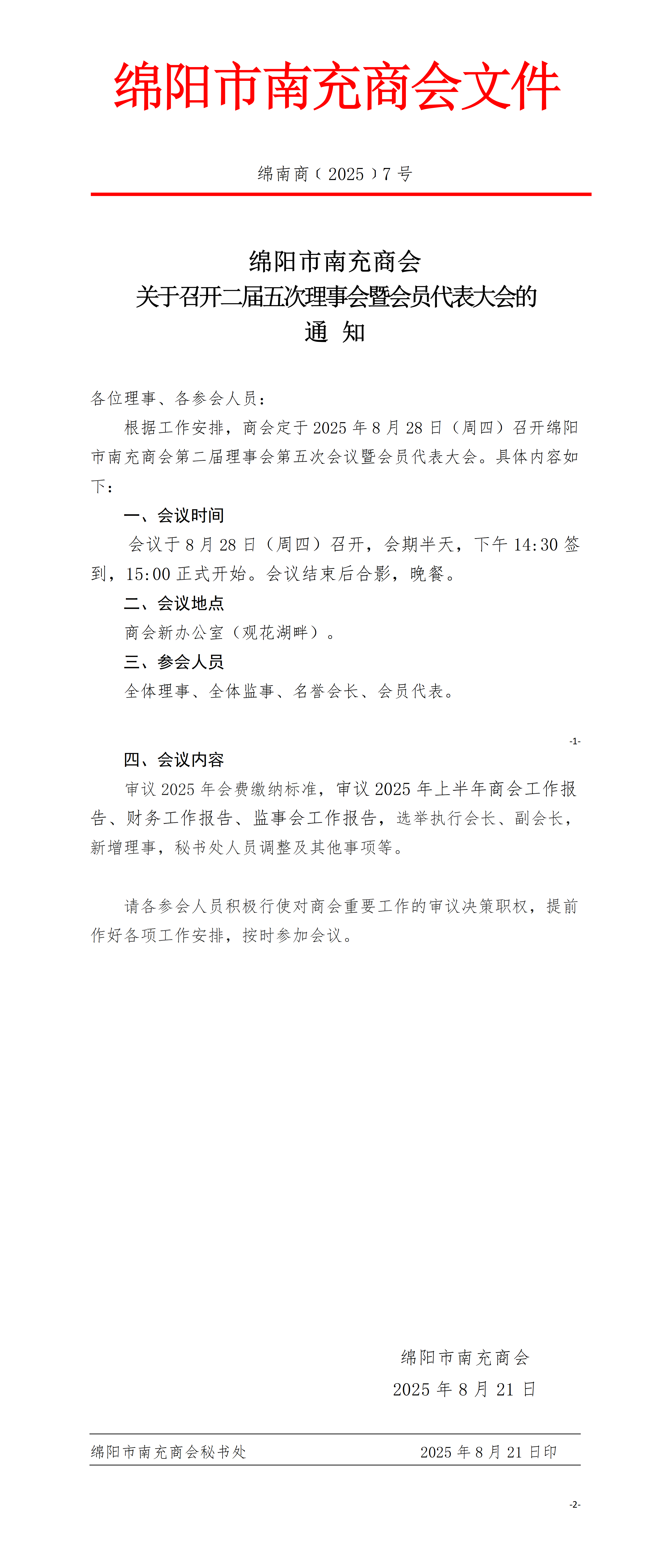 关于召开二届五次理事会暨会员代表大会的通知