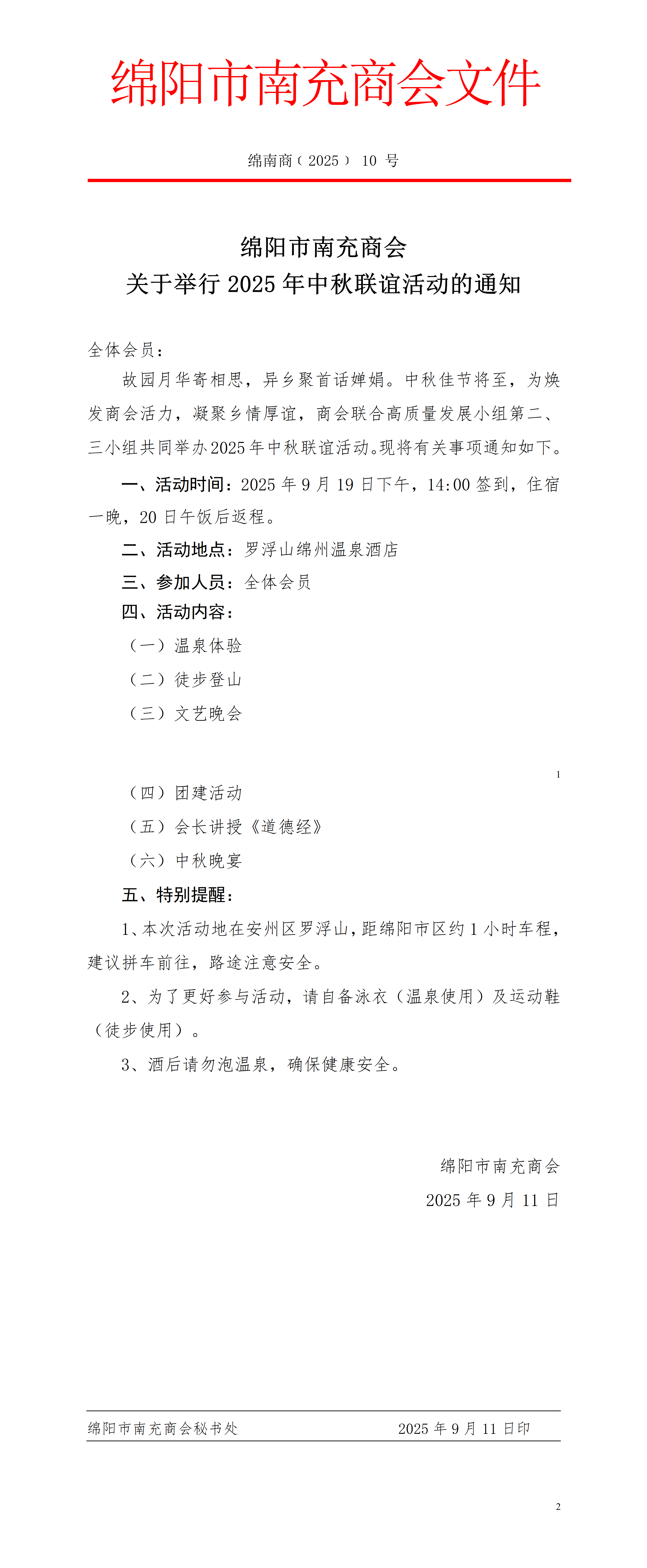 关于举行2025年中秋活动的通知